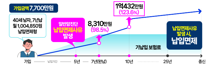 ※ 납입면제형 가입 후 보험료 납입이 면제된 경우 보험료 납입기간 종료일까지 보험료가 납입된 것으로 하여 납입완료보너스를 계산