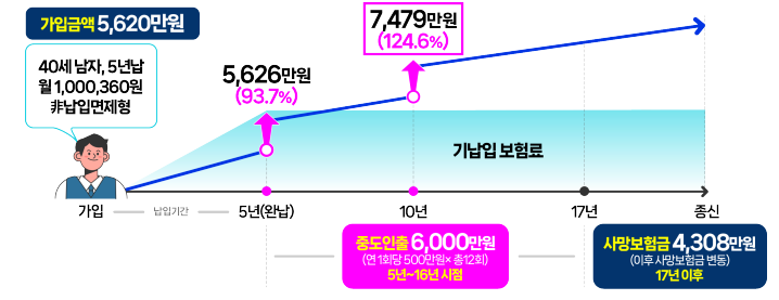 ※ 버팀목자금 = 주계약 기본보험료X버팀목자금비율X(12X보험료 납입기간(년수))